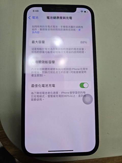 平常有貼螢幕保護貼及使用防撞殼、電池健康度88%、未維修過、未換過電池