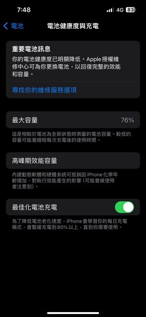2、無維修紀錄,因換機出售,電池健康度76%