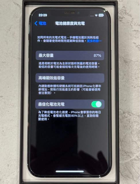 物品狀況:9成新,外觀保持良好,功能皆正常無維修紀錄,電池健康度87%,手機有貼保