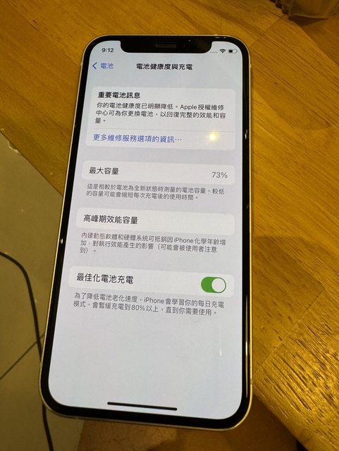 電池健康度73%,右下方有一凹角,功能皆正常