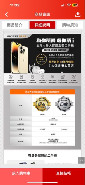 購買來源:台哥大認證中古機