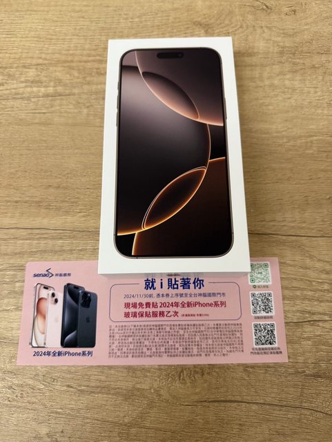欲售物品:iPhone 16 Pro Max 256GB 沙漠金附贈保貼兌換卷