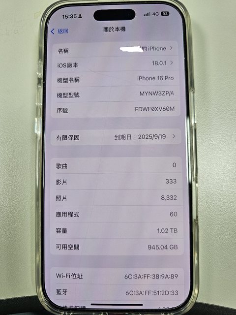 標題[賣/雙北/面交] iphone 16 pro 1TB 二手用一個