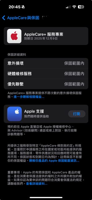 保固日期:2025/12/9 AppleCare+