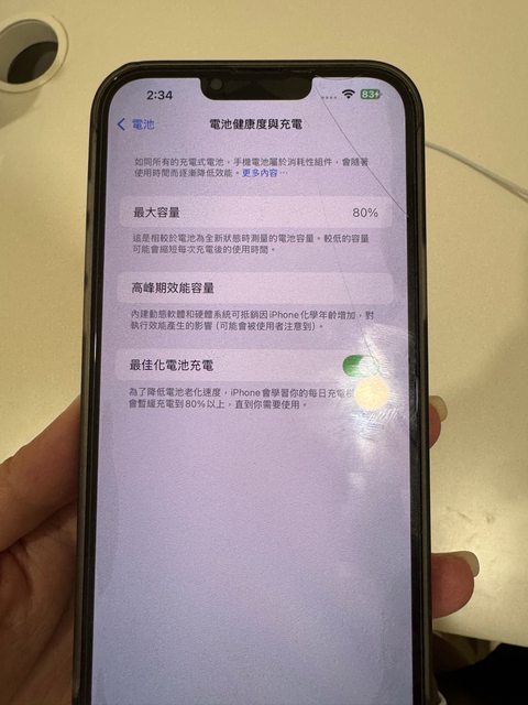 電池健康度80%手機無更換電池,無維修紀錄,表面為保護貼裂痕,功能皆正常.