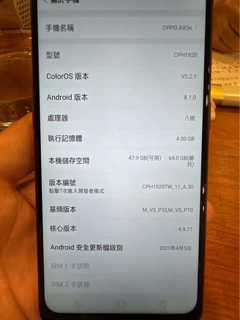 欲售物品:OPPO AX5X 4/64G 雙卡