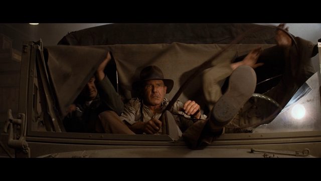 話說有一段Indy 一屁股摔回車子後車箱,也是致敬水晶骷髏王國裡在51區倉庫打鬥時