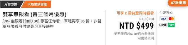 雙享方案除了可以看Catchplay+ 本身的片單還可以看HBO GO