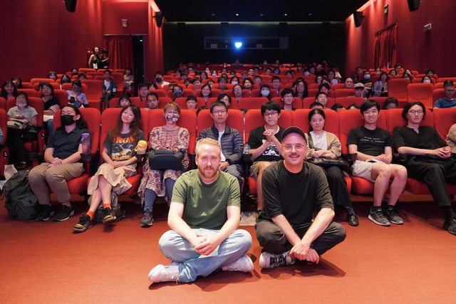 導演巴斯德沃斯(前排右)與製片馬克高沿斯(前排左)出席《小世界》映後座談與觀眾