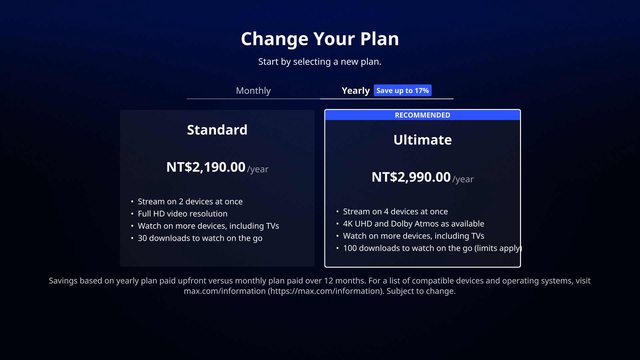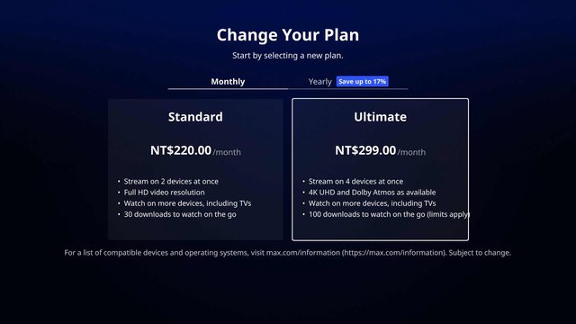 有網友在 Max 訂閱付費畫面看到疑似是台灣/香港的方案