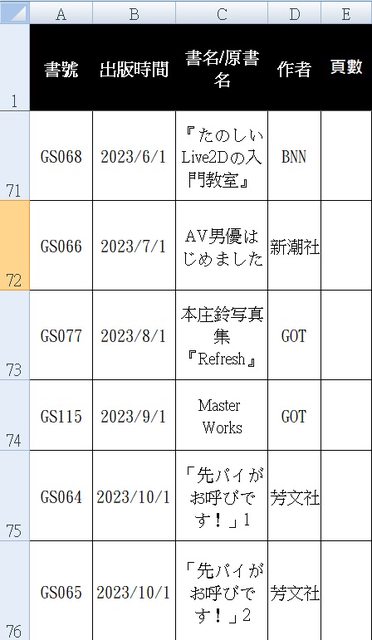 唯一預計出版的成人漫畫,只有《[ななお] Master Works》,而且是GOT必修正版;