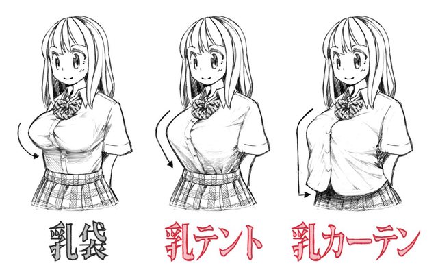 最近特別喜歡這種「帳篷乳」畫法,巨乳緊緊地撐起襯衫令人特別興奮
