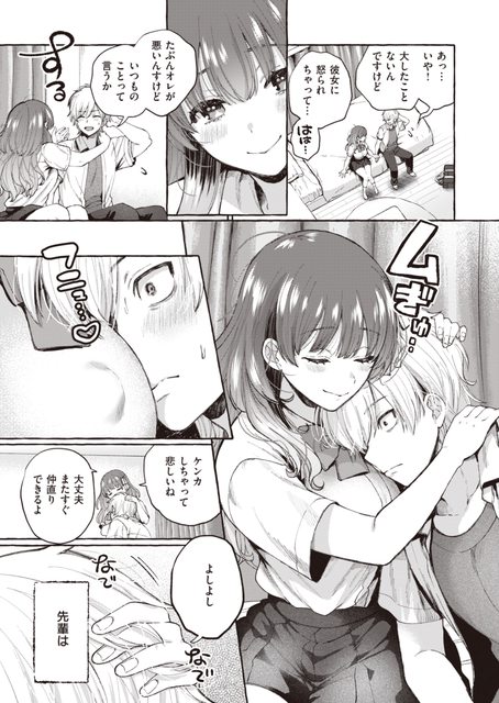 聽到学くん說又跟女友吵架,麻丘便把他抱入懷中安慰