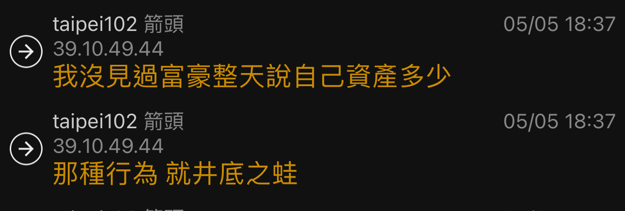 → taipei102: 別出口就井底之蛙什麼的 顯的很爆發戶 39.10.49.44 05/05 18:17