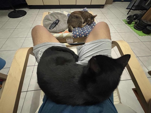 人目前在北高工作生活,有一台車與一間房,和兩隻小笨蛋貓咪,有運動習慣,下班通常