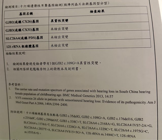 推 yyyycccc : 懷孕時,媽媽我有驗孕基因,發現我帶有聽損GJB2 的 07/29 19:47