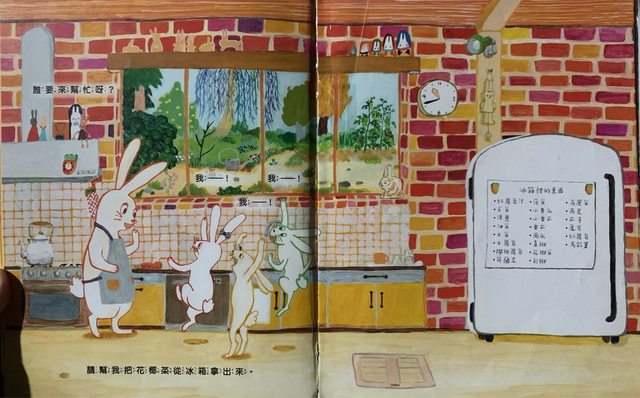 故事第一頁 是兔子媽媽詢問哪裡有小幫手要幫忙