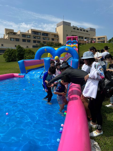 穿太空人衣服這個活動每個小孩進行的時間很短幾分鐘而已,就去下一關滑水道了,但我