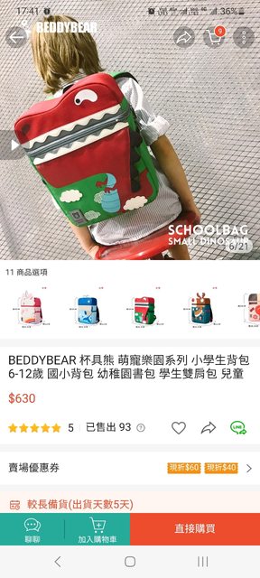標題售 韓國BEDDYBEAR恐龍背包