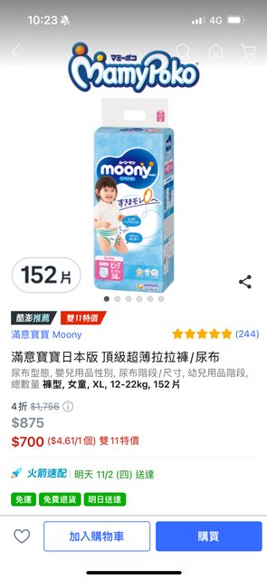 推 pai730630 : 這個價格真的很可以,即使小孩已經在慢慢戒白天尿 11/01 13:21