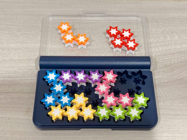 目前3歲半的她,兩個空的形狀她都能自己放入了