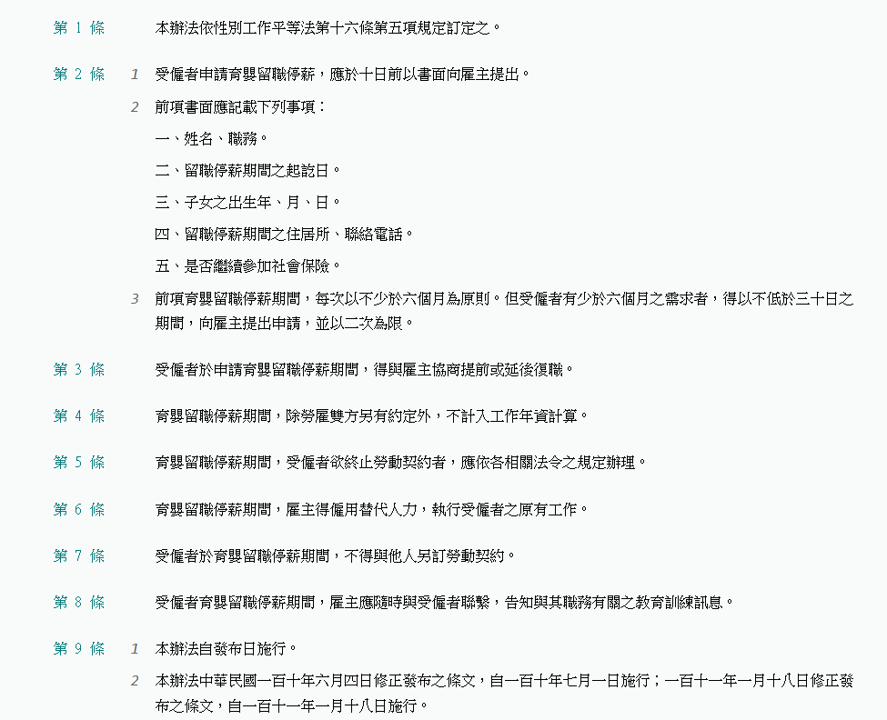 → kevin28 : 受僱者於育嬰留職停薪期間,不得與他人另訂勞動契約 11/10 12:59