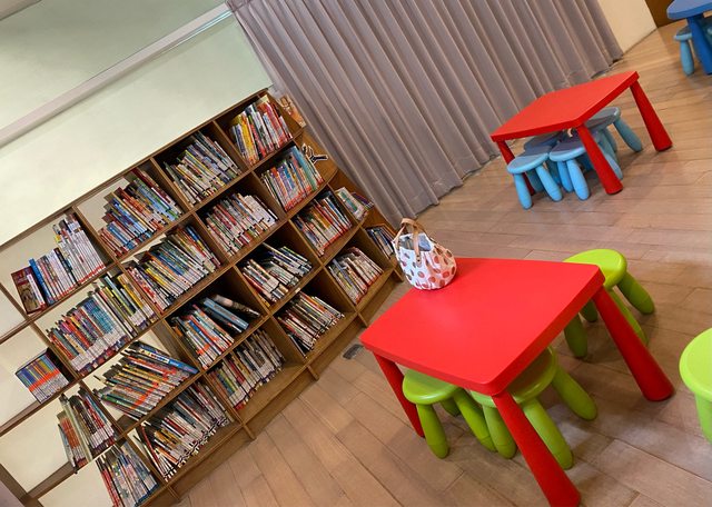 超多的繪本故事書,還有桌椅可以親子共讀,