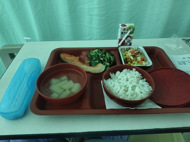 胡醫生早上來確認傷口,並教如何擦藥,可以正常飲食(不用低渣),但禁辛辣食物,第四