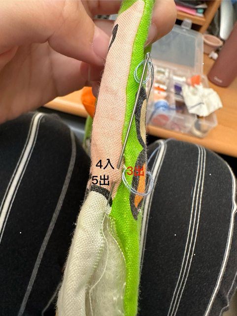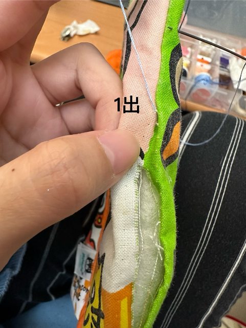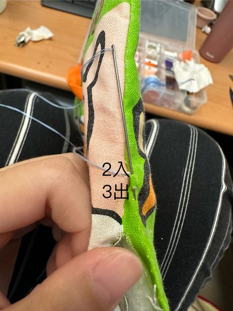 然後第一針 從裡面出來
