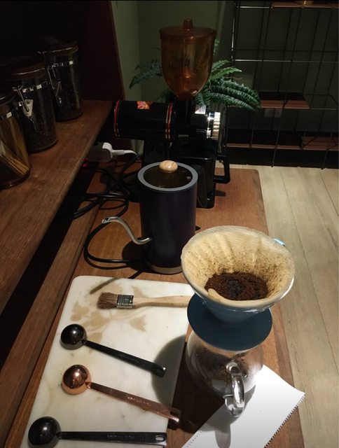 沖杯咖啡再下樓吃晚餐。