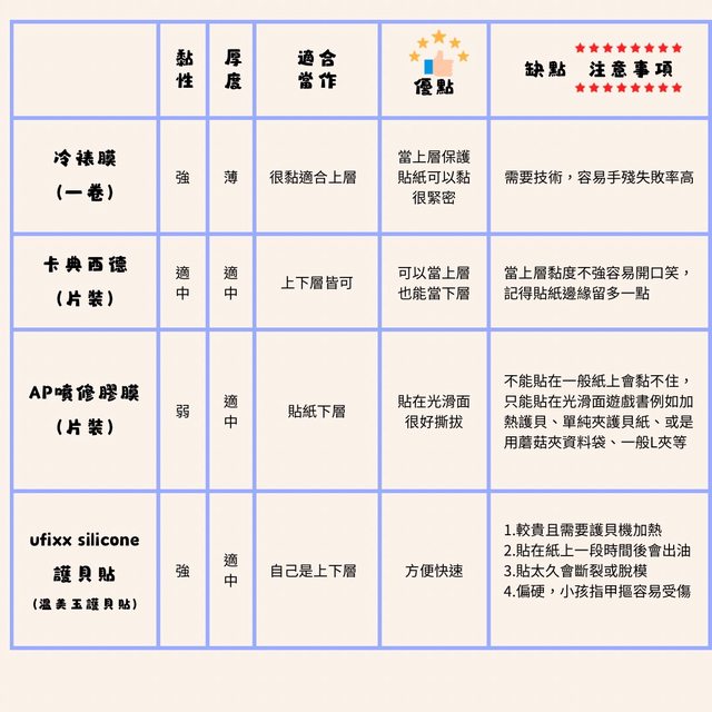 而用ufixx silicone 護貝貼(溫美玉護貝貼)則能直接做上下層