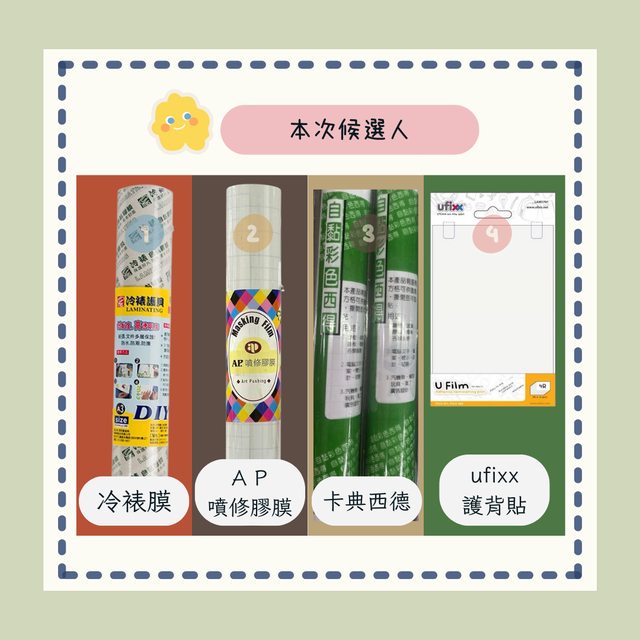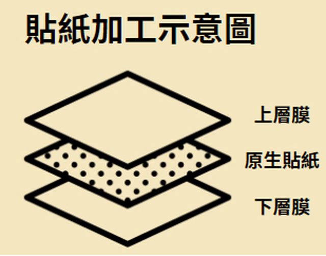1.貼紙上層選黏性強且厚度薄的,例如:冷膜、卡典西德、透明膠帶