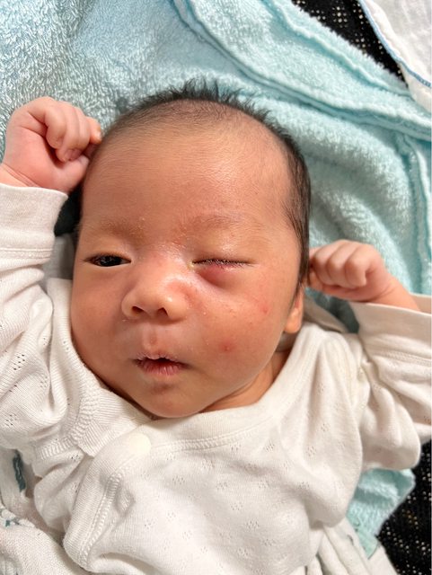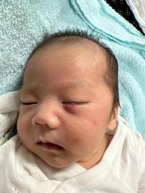 → s90366770607: 幫你更正一下 是左眼腫不是右眼喔 你的右邊是寶寶 03/04 17:26