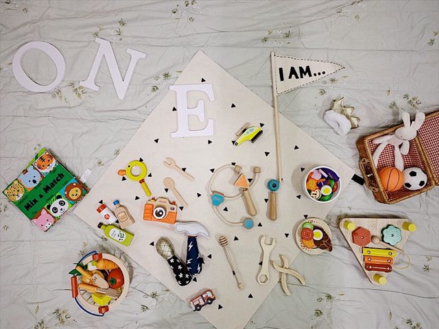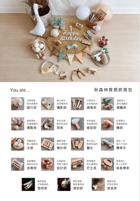 不論是抓周用的木質玩具還是搭配的佈景道具,