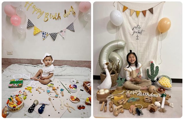 但我又加了幾個家裡現成的道具(數字氣球、抱枕)