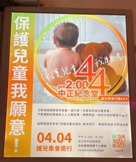 更新:因為地震,顧及參與者的安全,遊行延期。 若有新的資訊,我還會po文打擾大家,祝大家都平安 ———- 其實我有想過 這場遊行會有什麼效果呢? 可能只是讓我們一同走去一個地方,喊喊口號,留下汗水,然後就沒有然後 如同汗水,如同眼淚,蒸發後就什麼都不剩了 而他呢? 解剖報告那些文字,勾勒出孩子最後三個月的處境 頭骨、指甲、雙腳、生殖器,沒有一處完整無缺。 然而再怎麼仔細的報告,都無法說出他內心的恐懼跟無助 因為那些無法量化 就連他自己都說不出口,因為他只有一歲十個月,還在牙牙學語的年紀。 一個只會用哭用單字表達的年幼孩子 雖然不情願,但我也得承認 在遊行過後,剴剴這個名字會逐漸不被提起 因為我們的生活持續進行 會有新的事物、新的歡樂佔據我們的腦海 而他逐漸被排除在外 就跟他殘破不堪的幼小身軀一樣 化作一縷青煙,了無痕跡 那他來這世上到底有什麼意義呢? 但是如果 當你聽到一陣撕心裂肺的哭聲 或者看到兒福相關法案需要通過 你猶豫不決或想要撒手不管的時候 想到那個塵封已久的名字,想到他的笑容,而能鼓起勇氣,積極作為 那剴剴就不算白走了這一遭 因為他喚起了大眾的勇氣,免於下次悲劇的發生 遊行便是如此 我們可以用平靜溫和的方式 讓政府機關更加重視兒福權益,重新檢討制度 讓其他民眾更能關注相關議題,做出正確的選擇 還能給予多年耕耘的社會工作者鼓勵 讓他們更有動力堅持下去 兒童的聲音太微弱了 需要我們為其發聲,保護他們 願每個孩子都能平安長大 明天4/4 14:00-16:00 中正紀念堂自由廣場 護兒遊行有四大訴求: 1.去除縣市資源不同的階級化,完善各類幼兒平等補助 2.鼓勵生育之父母跟家庭後援支持育兒 3.出養機關之完善與制度調整 4.兒虐犯意之司法修正 明天陰天,是適合出門的好天氣 如果帶著幼兒,請注意補充水分、防曬 最重要的是 記得親親抱抱他們 讓他們感受溫暖,而能傳達下去 https://i.imgur.com/9R7bCZB.jpg