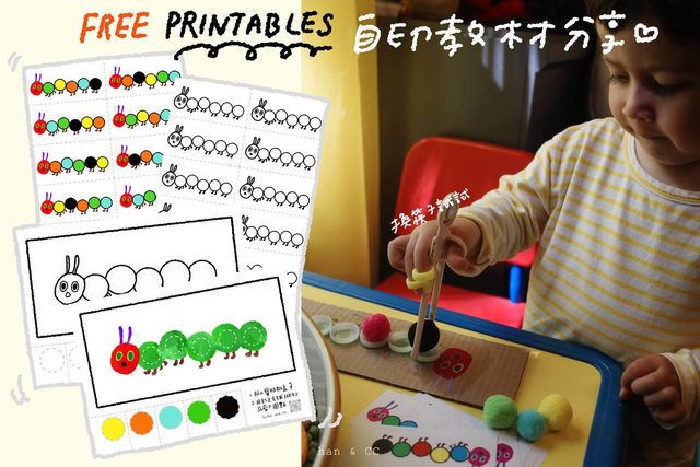 標題[遊戲] 好餓的毛毛蟲 色彩排列遊戲學習單分享