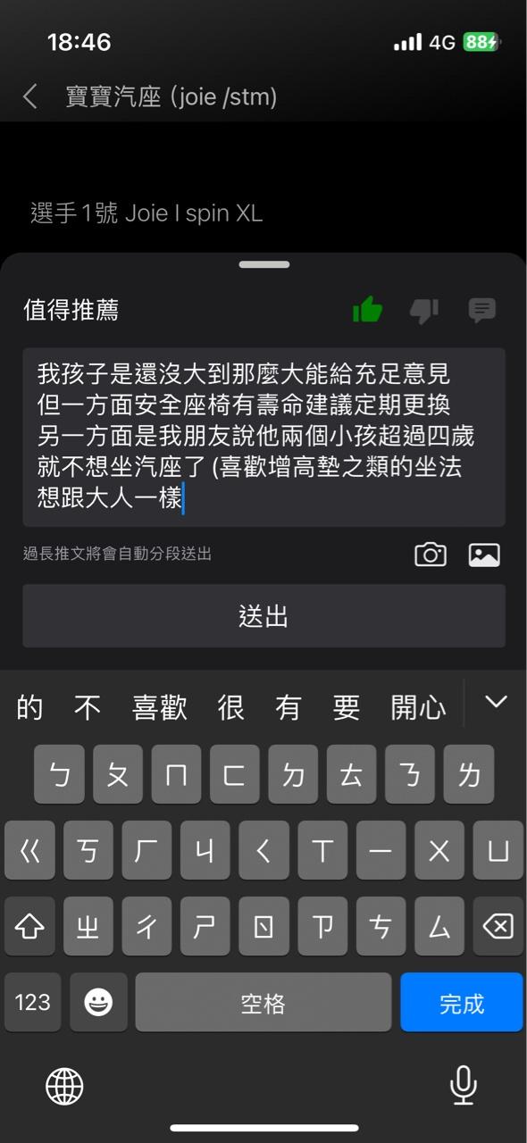 推 OctUanM : 趁母檔買了joie I spin 0-4 ,試坐跟實際上路小孩都 05/12 18:50