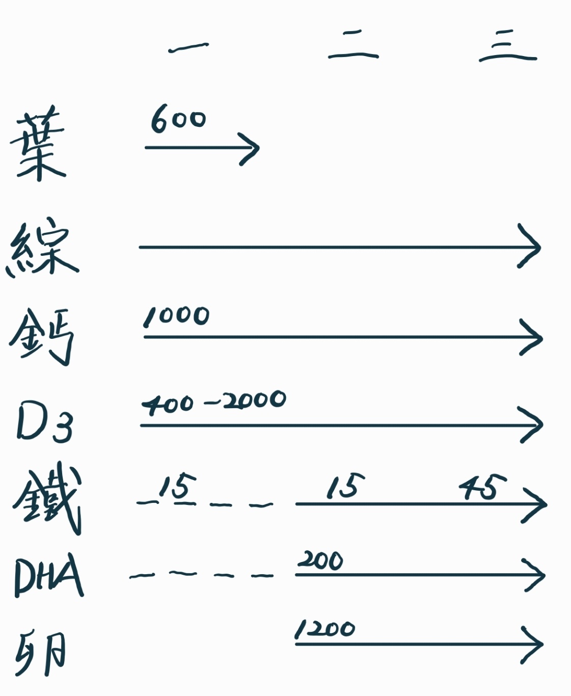 → lalatwo : 他都是看後面身體狀況才補,目前中期是吃葉酸、孕婦 06/25 17:51