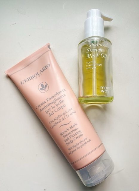 我的保養順序主要是: 先擦媽媽餵的妊娠油,接著再擦L’erbolario 蕾莉歐的妊娠霜