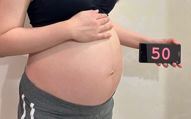 附上我目前自豪的孕肚(預產期倒數50天時拍的)