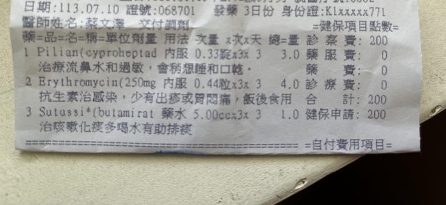 → kawill : 咳超兇。一週後才開專門的抗生素,吃第一包藥過幾小07/11 14:32