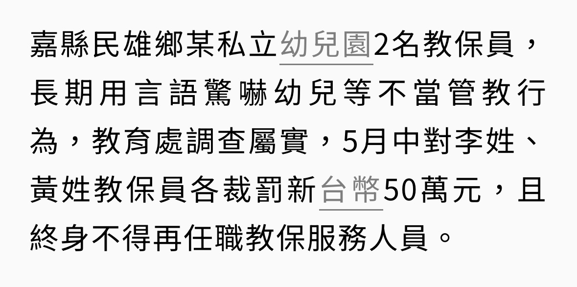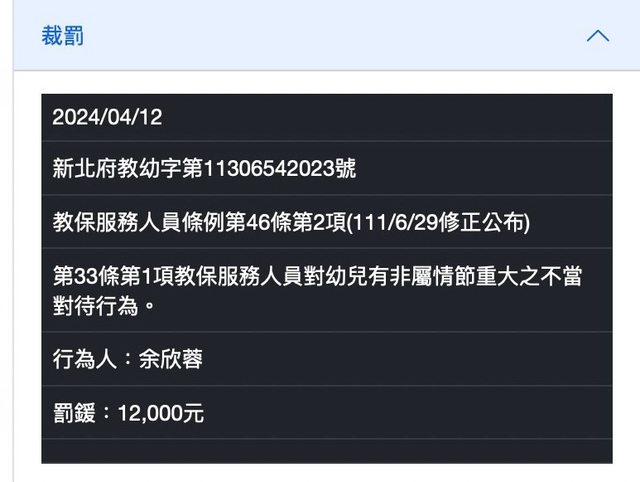 → Sooer : 幼兒園也被罰過非屬重大情節的不當對待,園方解釋07/17 10:56