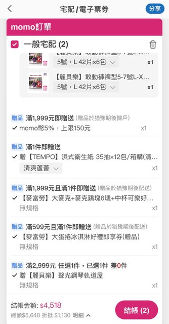 好康主旨:momo 88情人節尿布神券