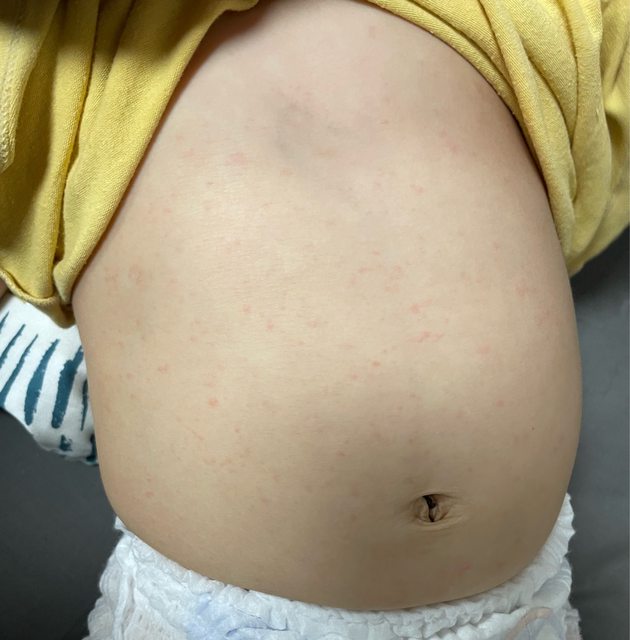 推 euruing : 我兒子退燒後的玫瑰疹比原po照片的還更密集,照片中 08/25 01:39