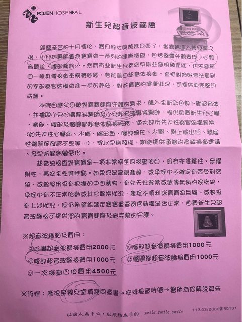 → yy1k2g : 再補充一下,新生兒的一些篩檢如超音波檢查常常因為 08/29 11:11