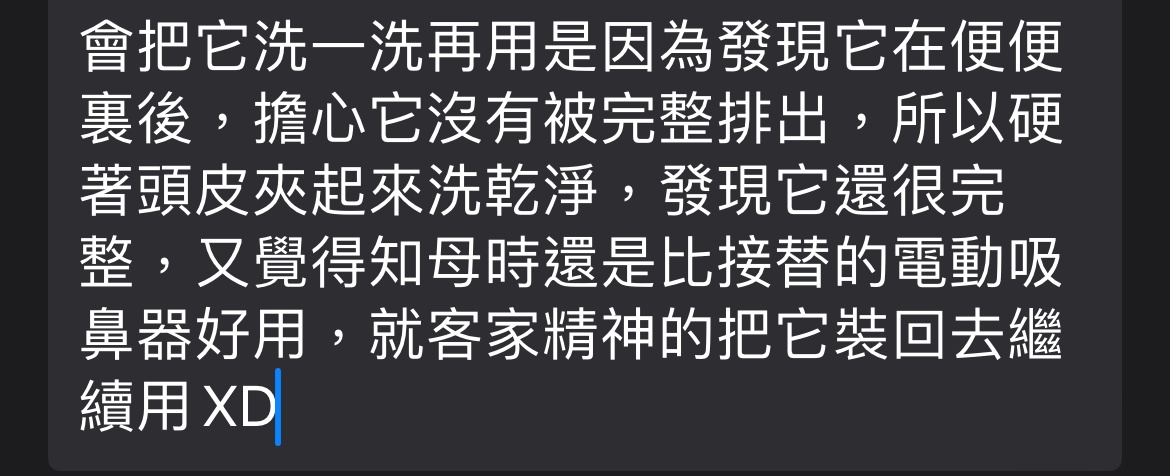 → nochitty : 先噴完食鹽水後30秒,鼻涕會好吸很多。 01/04 05:43