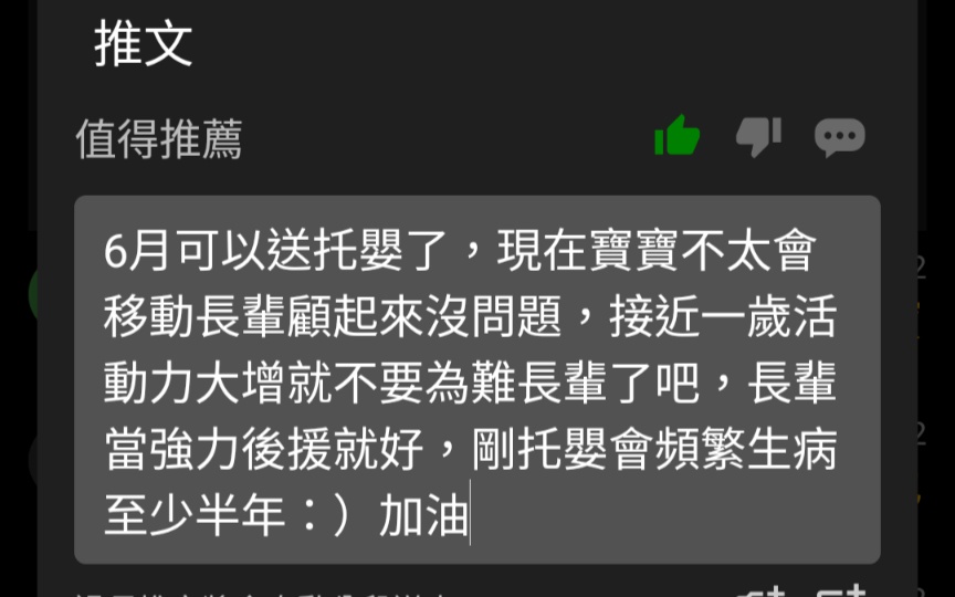 推 pocata : 一歲後建議托嬰,長輩當後備,托嬰有適應期 /生病 02/12 09:32