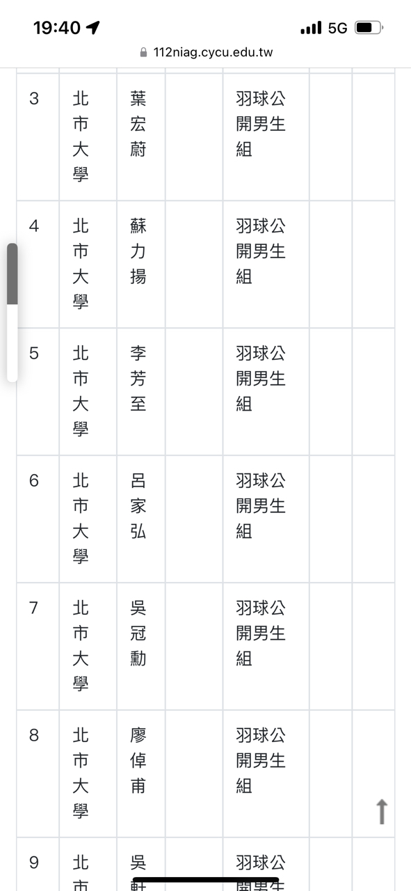 推 ysh : 大專盃團體賽跟個人賽是分開的 05/06 20:40