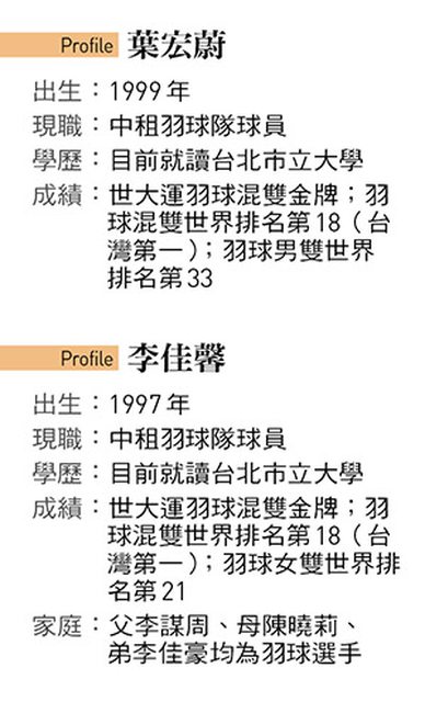 很難想像,現年24歲的葉宏蔚及26歲的李佳馨,才搭檔混雙20個月,就拿下生涯第一面世